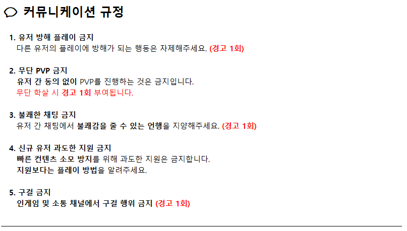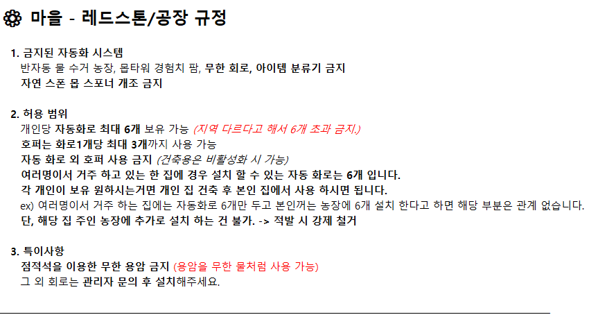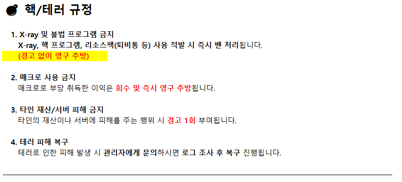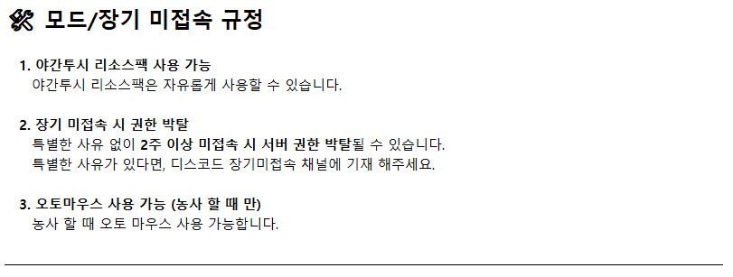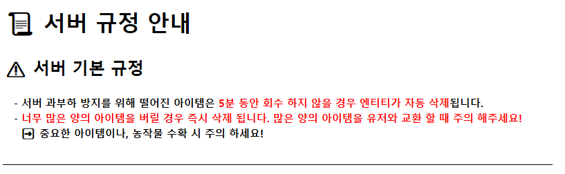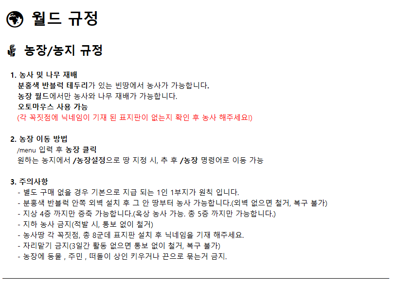 서버 및 월드 규정