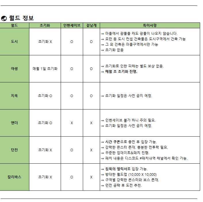 서버 및 월드 규정